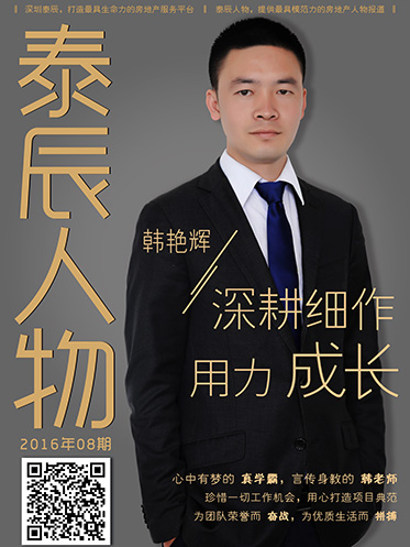采访过程中韩艳辉对自己工作过的项目如数家珍。入职至今他服务过许多个楼盘,打造了一个又一个项目典范。他服从公司的安排,哪里需要就投身到哪里,用心去做自身的本职工作。他从不去抱怨自己的工作环境,坚信工作只要用心去做,总能得到回报。以前受过的打击和挫折让他更珍惜工作机会,刚毕业的他面试了许多家房地产公司却一直没有找到合适的工作。求职期的被拒绝、被轻视让他在正式工作之后兢兢业业,领导需要的数据他早早准备好。每次都加班到经理走后1小时才选择下班。正是他对工作的这份珍惜和认真,他总会接受公司最紧急的任务。而他也总是一切以大局为重,积极乐观地和同事一起从点滴做起。